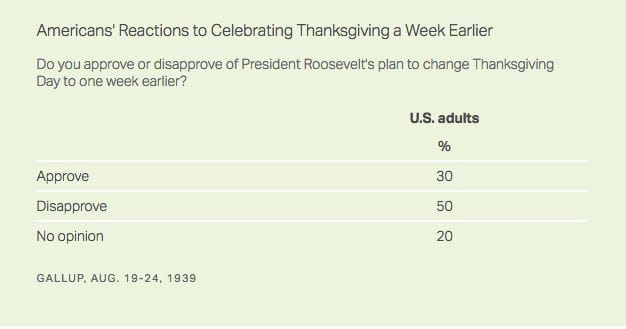 So, in August of that year, President Franklin D. Roosevelt agreed to change the date of Thanksgiving from November 30 to a week earlier.