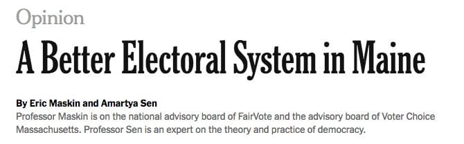There are more people now interested in voter-centric and voter-led election reform than ever before, and this has caught the attention of the mainstream media. Look at the news coverage on Maine:Source: The Economist