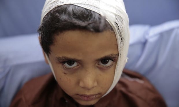 The U.S. and Saudi Led Intervention in Yemen Civil War: Drone Strikes, Civilian Casualties A Yemeni boy lies in the hospital after he was injured by an airstrike in Saada, Yemen August 9, 2018./REUTERS/Naif Rahma