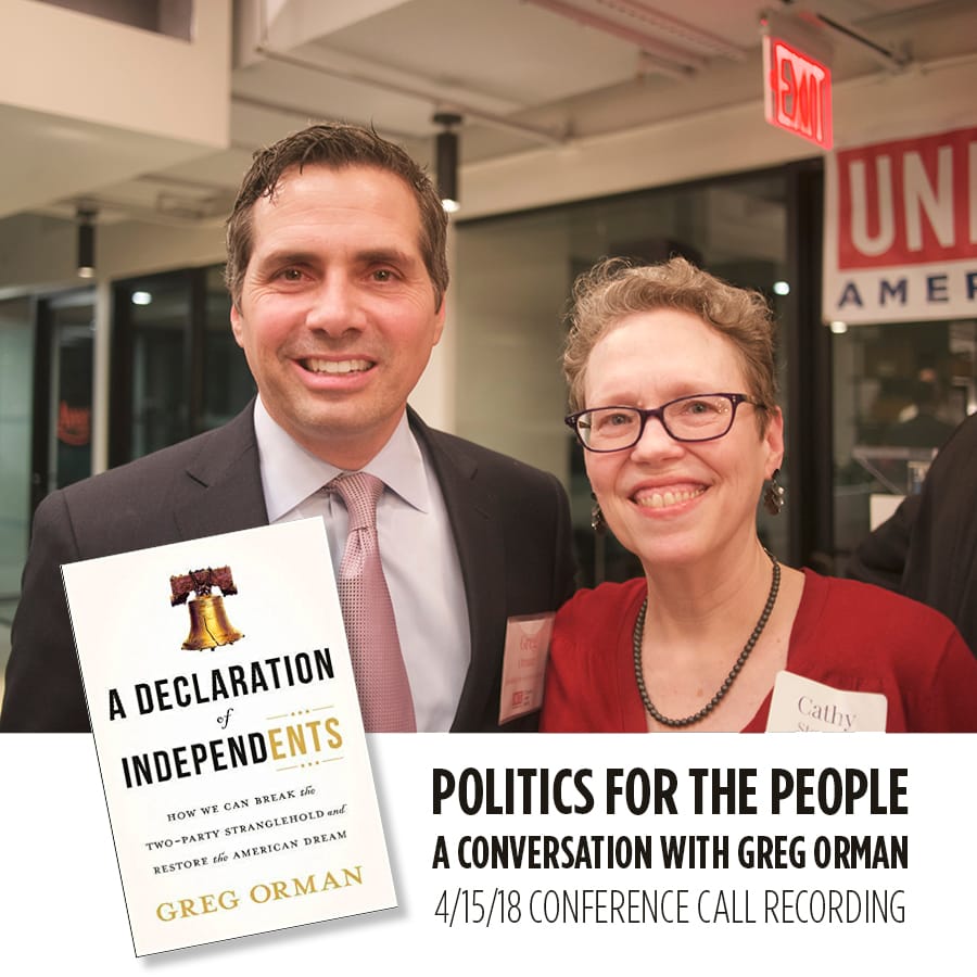We just finished reading Greg Orman’s book, A Declaration of Independents: How We Can Break the Two-Party Stranglehold and Restore the American Dream. On Sunday, April 15th we spent an hour with Greg talking about his current independent campaign for Governor of Kansas; the lessons he learned in his independent run for US Senate in 2014, and much more.