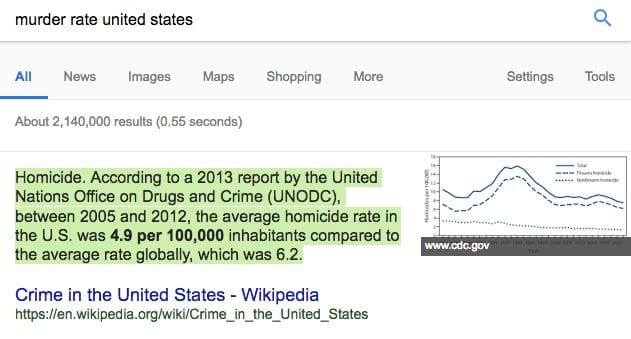 On a more local time scale, homicide in America is at a 51-year low, according to FBI crime statistics.